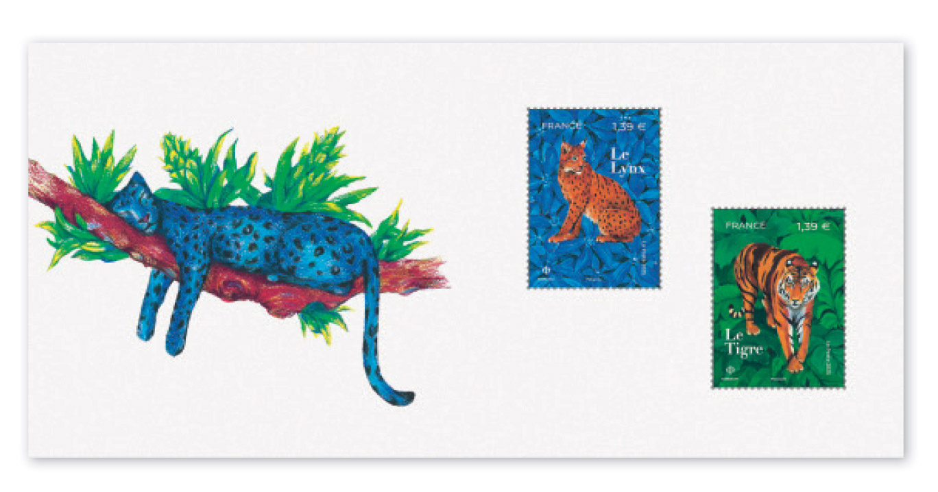 Dans le cadre de la traditionnelle série Faune et Flore, La Poste s’est intéressée à quatre représentants de la famille des félidés : le guépard, le lynx, la panthère noire et le tigre.
