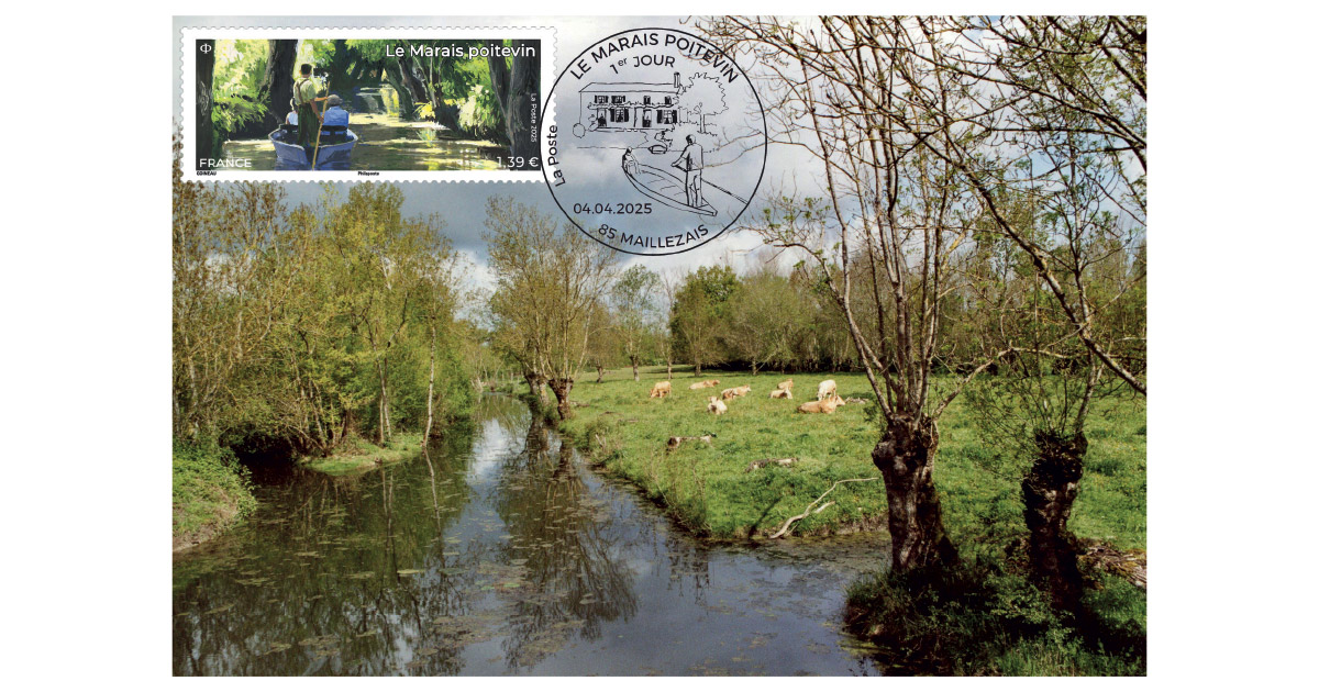 7 avril 2025 Le Marais poitevin : un timbre. Création : Raphaële Goineau d’après © photos Christian Kerihuel / Naturimages, Stefane Gautier / Naturimages, Jean-Loup Grosse / Naturimages, Frédéric Spada / Naturimages, Stéphane Bouilland / Naturimages, Martial Colas / Naturimages, Alexandre Cuomo / Naturimages, Alain Balthazard /  Naturimages, Christophe Brochard / Naturimages, Serge Deboffle / Naturimages.