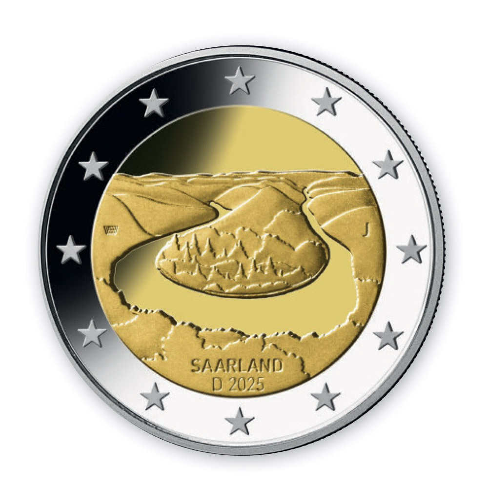 Le 16 janvier, la première 2 euros allemande de 2025 consacrée à la région de la Sarre a été émise. Cette monnaie est frappée à 30 millions d’exemplaires, notons que l’office allemand ne précise pas la répartition entre les différentes finitions, et qu’à l’heure actuelle ne sont disponibles que les monnaies en qualité courante et en Brillant Universel. Les versions Belle Épreuve ne sont pas encore en vente sur le site de l’office allemand.