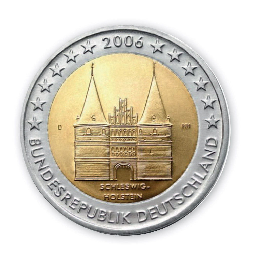 La première région honorée est le Schleswig Holstein, avec la monnaie conçue par Heinz Hoyer mettant en avant la porte de Holstein située dans la ville de Lübeck. 3 Cette monnaie est elle aussi frappée à 30 millions d’exemplaires. Depuis 2006, vingt monnaies de 2 euros ont été émises par l’Allemagne. Notons que depuis 2023 une seconde série a vu le jour reprenant des régions déjà mises à l’honneur, car les 16 Länders avaient déjà été représentés. 4 La monnaie de 2025 pour la Sarre est la troisième de cette seconde série.