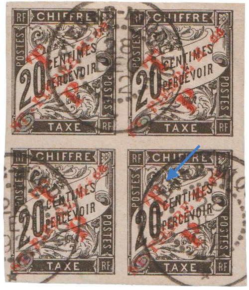 Par conséquent, si les panneaux étaient complets, le nombre de variétés pour cette valeur ne serait pas supérieur à 10 ! Il est évident que ces exemplaires seront dorénavant recherchés, et qu’ils devraient occuper une place de choix dans les prochaines éditions des différents catalogues. Un numéro avec un grand A serait d’ailleurs souhaité.