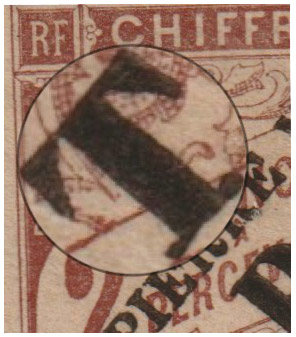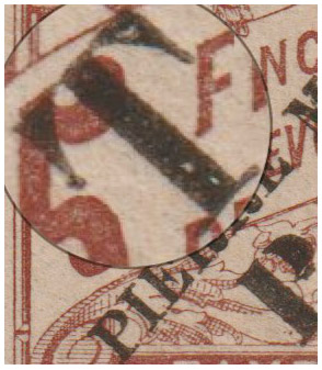 En effet, en expertisant un 5f, l’exemplaire avec le plus faible tirage de cette série, je me suis aperçu que le « T » de « T P » était différent (5 et 6). Pourtant, l’exemplaire était tout à fait authentique.