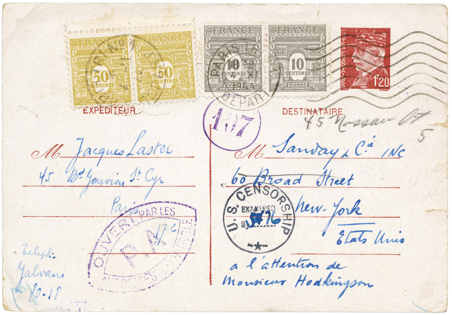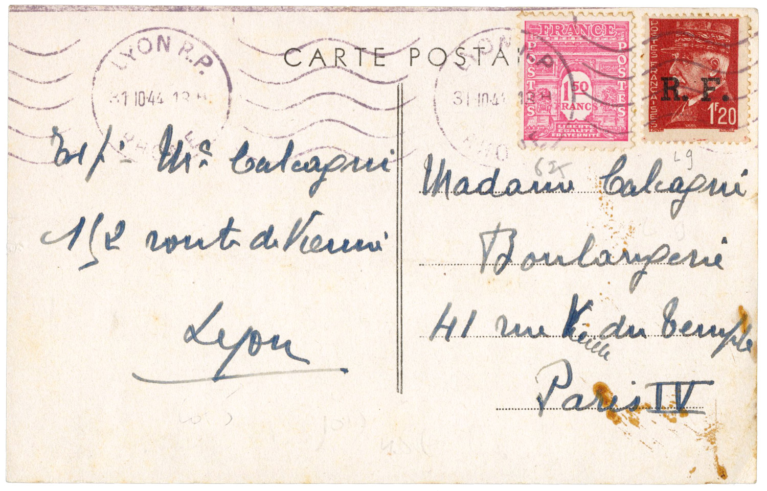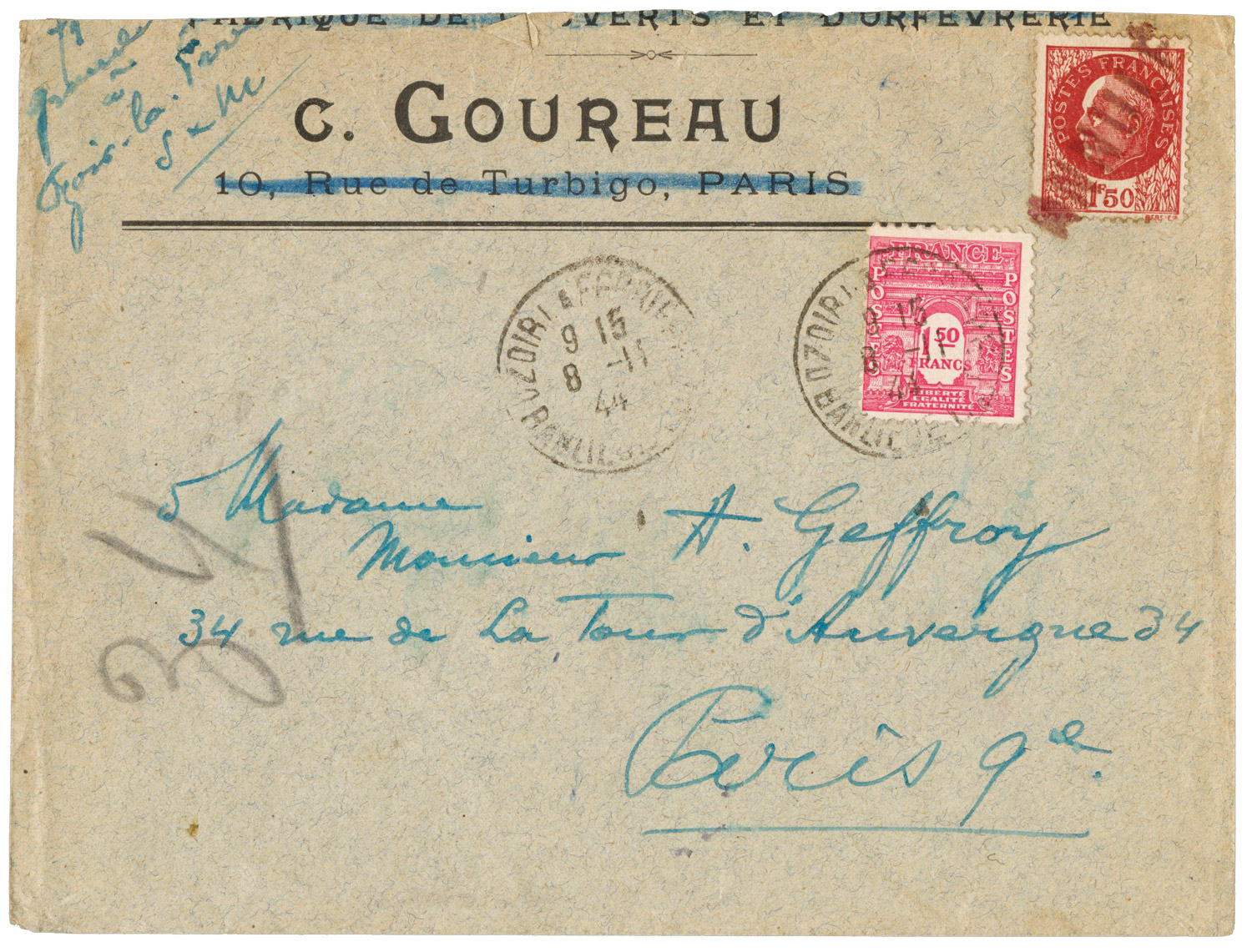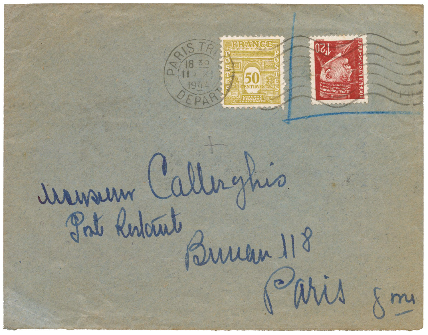 Dans une lettre du 25 septembre 1944 adressée au ministre à Paris, le directeur des services postaux de Marseille indique que les envois de timbres à 1,50 F vont permettre la suppression des Pétain à 1,50 F à partir du 2 octobre et de ceux à 1 F à partir du 5. Mais il s'inquiète des "timbres-poste de toutes valeurs émis en Amérique" et qui ne sont pas encore arrivés en zone sud. La mise en vente générale des Arc de Triomphe a lieu le 9 octobre 1944 à Paris.