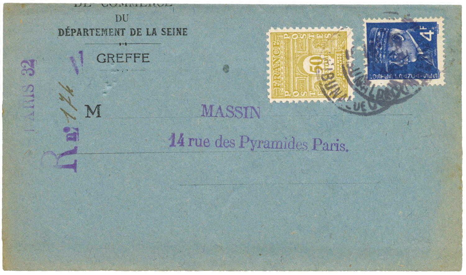 le greffe du Tribunal de commerce de la Seine pour des envois recommandés à 4F50.