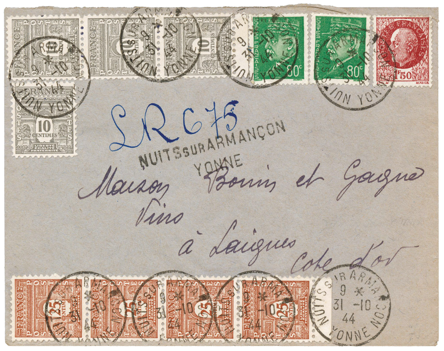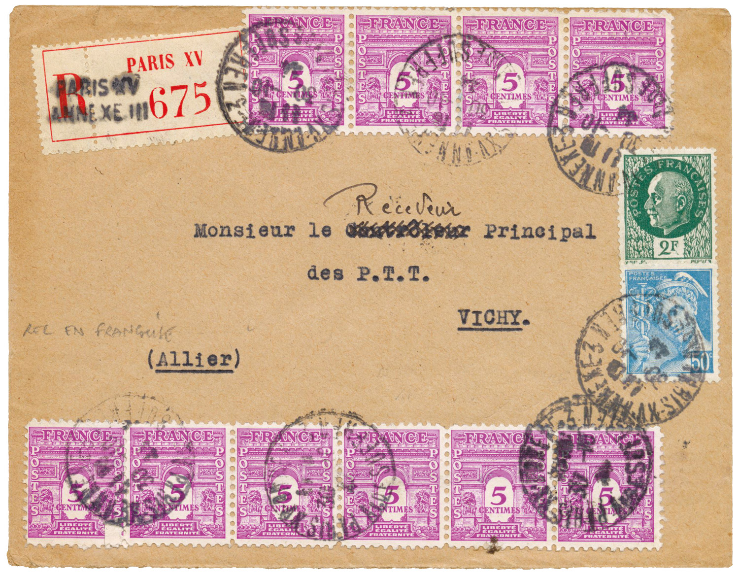 Un seul organisme a utilisé de manière intensive des affranchissements composés Pétain et Arc de Triomphe :
