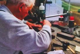 C’est le générique du début qui nous intéresse : on y voit deux mains gravant au burin une frise sur un bloc d’acier. Or de qui sont ces mains ? « Je vous le donne en dix, je vous le donne en cent » comme l’écrivait la marquise de Sévigné : ce sont les mains de Pierre Forget. La séquence dure deux minutes. Une démonstration sur grand écran en quelque sorte… Mais en regardant bien on peut faire la bizarre constatation suivante : de temps en temps on voit la main droite qui tourne à 180 degrés tout en gravant et non pas le bloc d’acier. Etait-ce le style de Forget ou bien une contrainte de prise de vue ?